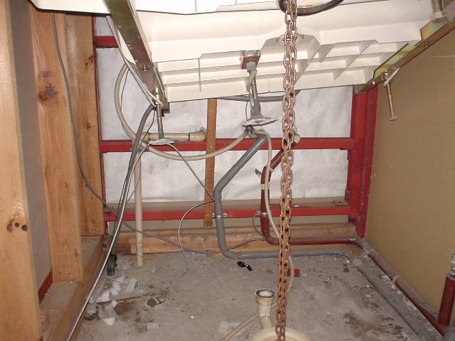 ユニットバスの状態はなんだか、持ち上げられているような 状況ですね。 床下へ水が流れ込んでいると噂される配管状況です。 まぁ、見ても分かりませんね(*'-')はい 床とユニットバスの間の空間です。 なんだかジャッキみたいなものが見えます。 天井付近です。 骨組みが丸見え・・・(;´□`) まぁ、現状はこんな感じ。 今日(4/16)も、工事屋が入るはずなのでどうなっていくのか 非常に楽しみです。