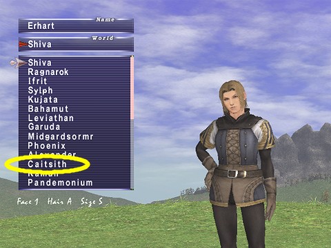 キャラメイクのサンプル画面。サーバ選択が可能。